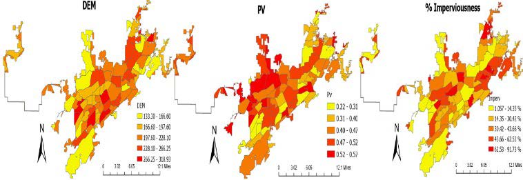 Figure 3. Environmental parameters mapped over Jefferson County (Source: Authors).