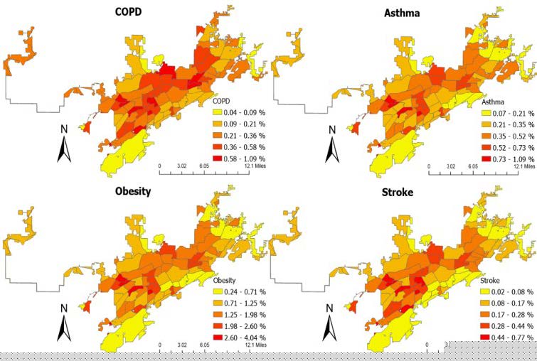 Figure 5. Health parameters mapped over Birmingham city (Source: Authors).