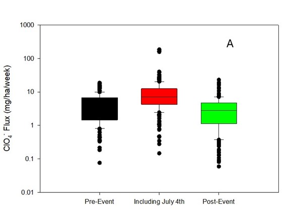 Objective 1. Determine the relative impacts of fireworks use on ClO4- by direct deposition and secondary contamination from dissolution and transport after precipitation events (runoff).