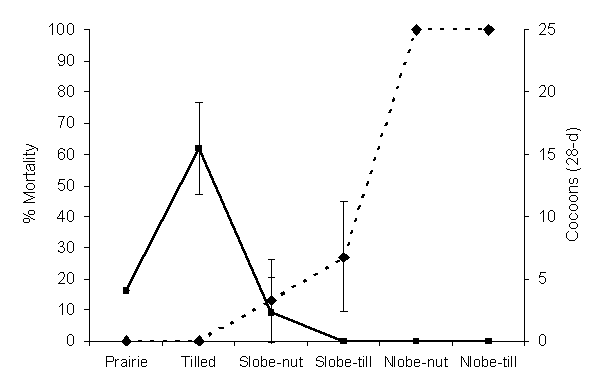 Figure 8: Earthworm mortality in tests with soils from the Tallgrass Prairie spill site.