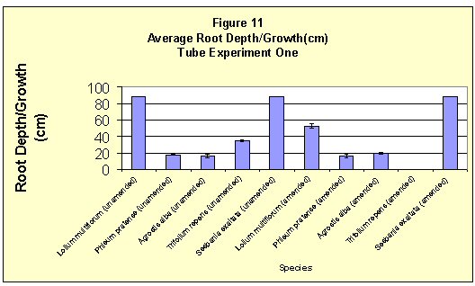 Figure 11. Average Root Depth/Growth (cm) for Tube Experiment One