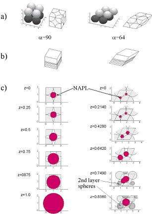 arrangements. Pore-size distributions and NAPL saturations in the unit cells