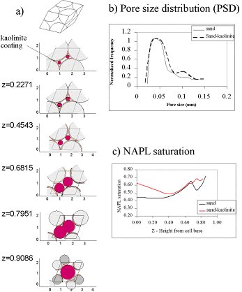 the pore-size distribution, and NAPL saturation in this unit cell are shown