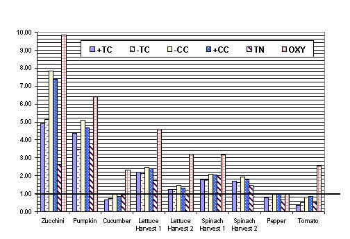 Air-to-Plant Dose/Uptake. Experiments have been completed to assess an alternate plant uptake route for zucchini. Zucchini plants were grown in clean soil in bins in two separate greenhouses containing significantly different chlordane ambient air concentrations. The experimental setup is shown in Figure 6. One of the most surprising results of these trials is the confirmation of translocation of the chlordane taken up through the leaves through the phloem throughout plant tissues, including accumulation in the roots.