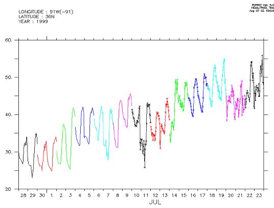 MM5 Configuration. The simulations were configured for a 32-km grid resolution over the Continental United States and 8-km resolution over the Southeast United States. MM5 version 3.4, with some modifications for incorporating satellite information, was used for the simulations presented here. The simulations (with satellite assimilation) covered the period of June 28 through August 20, 1999. The satellite retrievals used in this study are available from the National Space Science and Technology Center (NSSTC) Web Site at http://www.ghcc.msfc.nasa.gov/irgrp/1999_epa_study Exit .