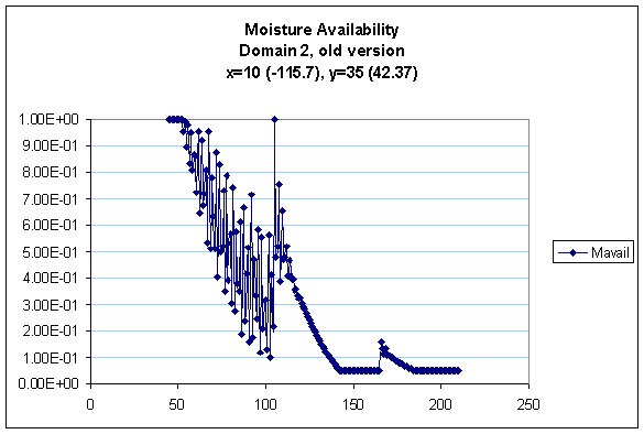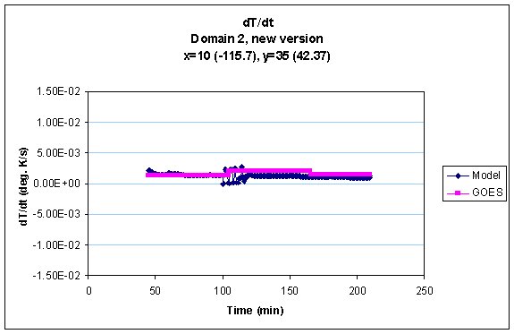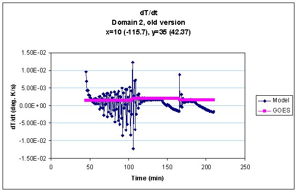 Investigating the cause of such behavior led us to discover few minor bugs in the code. After fixing the bugs in the code and rerunning the model, problems persisted. We started looking at the results at each time step. Figure 3 shows the model behavior at each time step for skin temperature tendency and corresponding moisture availability. This figure sheds light on several problems in the implementation of our technique within MM5.
