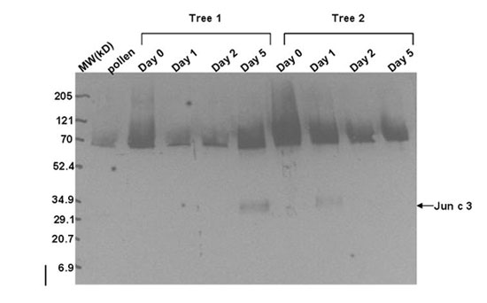 - Correlate the production of Jun a 3 in leaves with that in pollen, under field conditions.