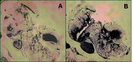 Figure 1. Medaka Brain Stained With CYP19B Sense (A; negative control) and Antisense (B) Probe