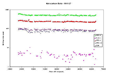CFC-12, Halon 1211, and CFC-11 (left to right). Halocarbon measurements from one